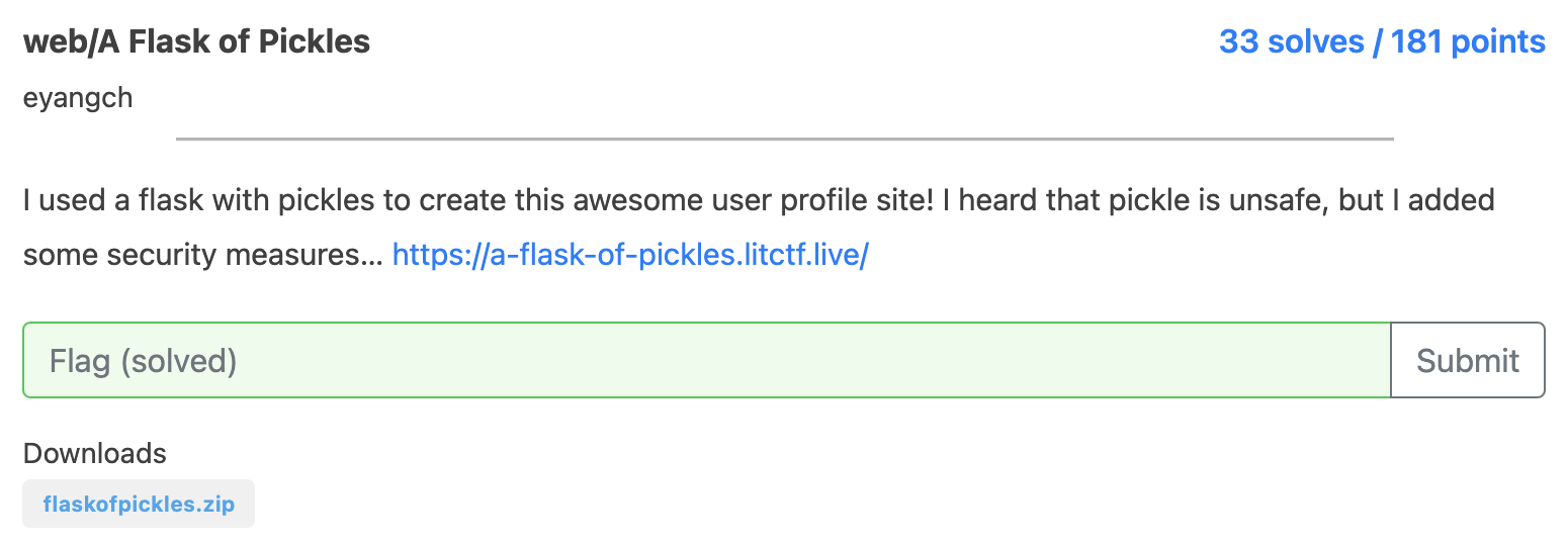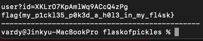 FLAG = flag{my_p1ckl35_p0k3d_a_h0l3_in_my_fl4sk}