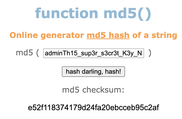 "adminTh15_sup3r_s3cr3t_K3y_N3v3r_B3_L34k3d" 를 md5화 하면