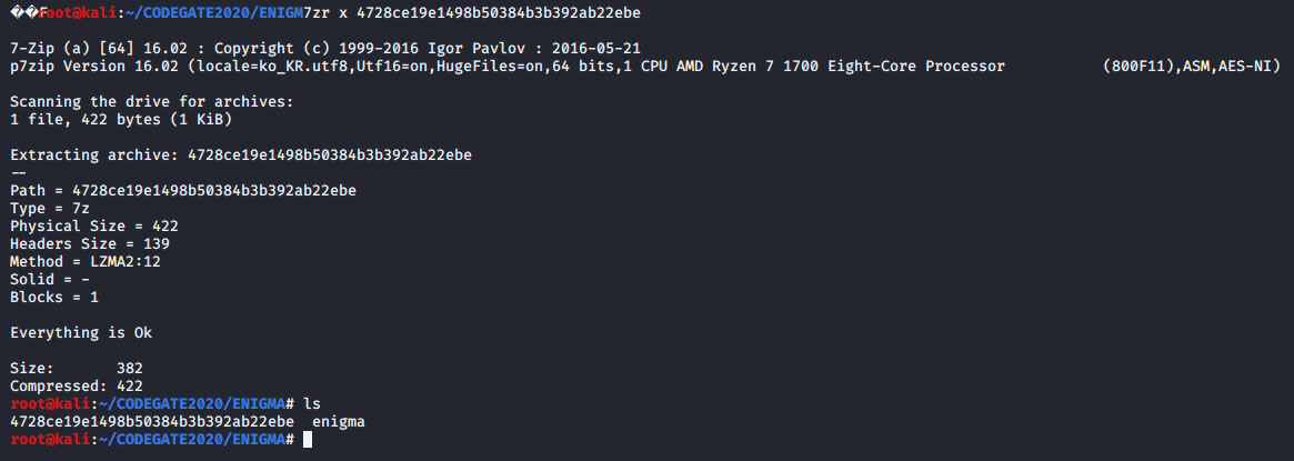 정상적으로 파일 압축이 해제되었고 enigma 라는 파일이 생성됨을 알 수 있다.