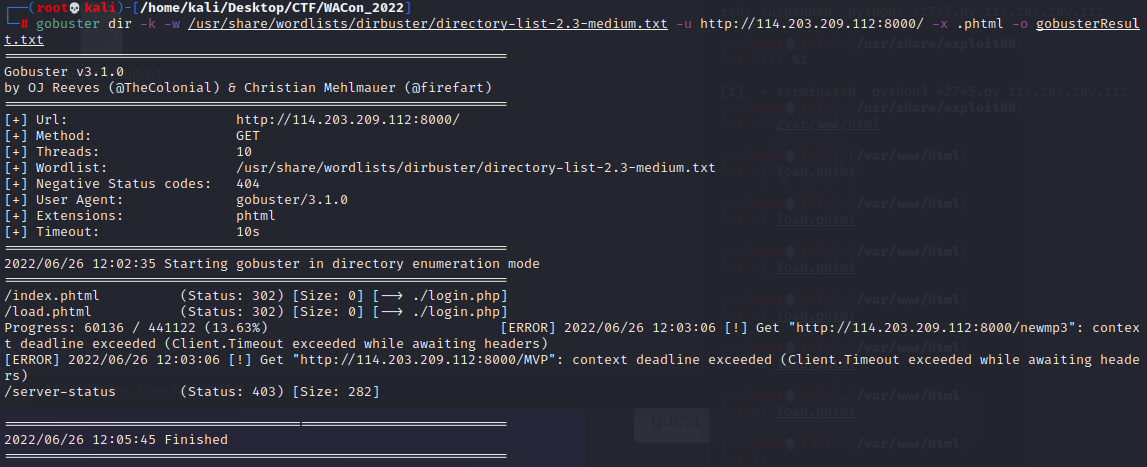 우선 gobuster를 통해 별도로 접근 가능한 디렉토리나 파일이 있는지 확인해보았다.(OSCP의 습관..)