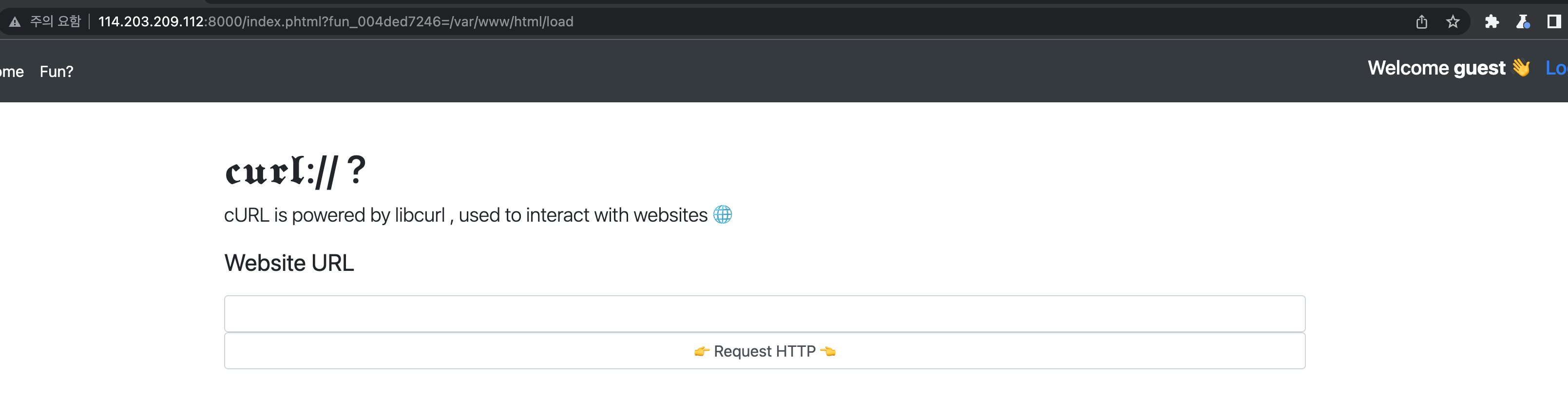 http://114.203.209.112:8000/index.phtml?fun_004ded7246=load실제로 직접 접근해보니 아래와 같은 메시지가 출력되었다.