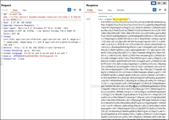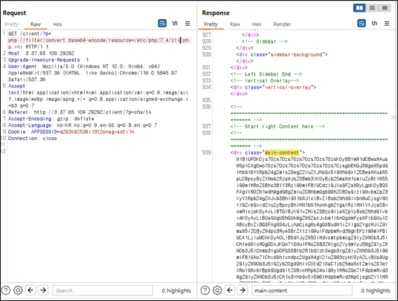 이를 해결하기 위해 php wrapper 중 php://filter/convert.base64-encode/resource=[파일명] 구문을 활용하여 base64인코딩된 상태로 php.ini 파일을 획득 할 수 있었다.