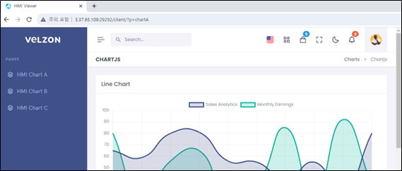 Chartjs 기반으로 보이는 Velzon 페이지가 나타났다. 여러 기능들을 테스트해보았지만, p 파라미터를 통해 ChartA,B,C 를 조회하는 것 외에 다른 기능들은 비활성화 되어있었다.