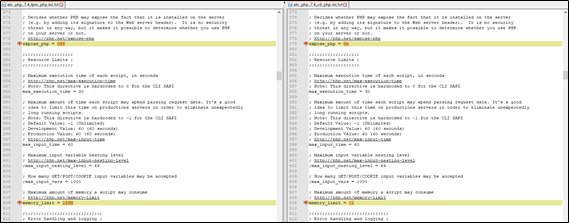실제 적용되고 있는 파일은 fpm/php.ini 파일이겠지만, 해당 파일의 특이사항을 확인 하기 위해 /etc/php/7.4/cli/php.ini 파일을 함께 획득하여 이를 비교해보기로 했다.