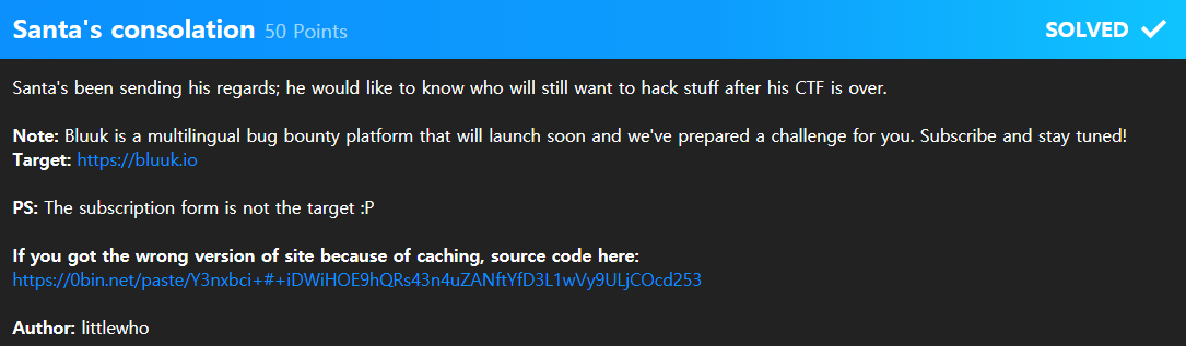 두 번째 Web문제였다. 특이한 점은 출제자측에서 곧 런칭할 버그바운티 사이트 안에 문제를 구축해놓았다. 홍보 겸 좋은 방법이라고 생각한다. (나도 이 문제를 계기로 구독하였다 ㅋㅋ)